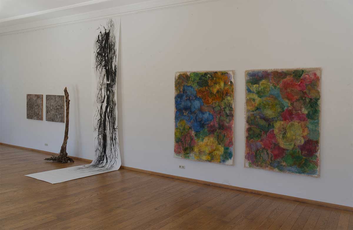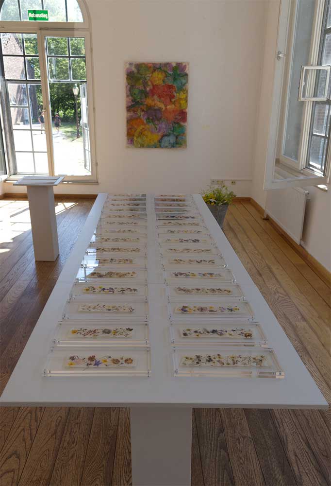 Blüten aus Krepp-Armbändern und Bilder aus abgerissenen Tapeten Anlässlich der Ausstellungseröffnung in der Versandhalle Grevenbroich ist ein Artikel in der NGZ erschienen.