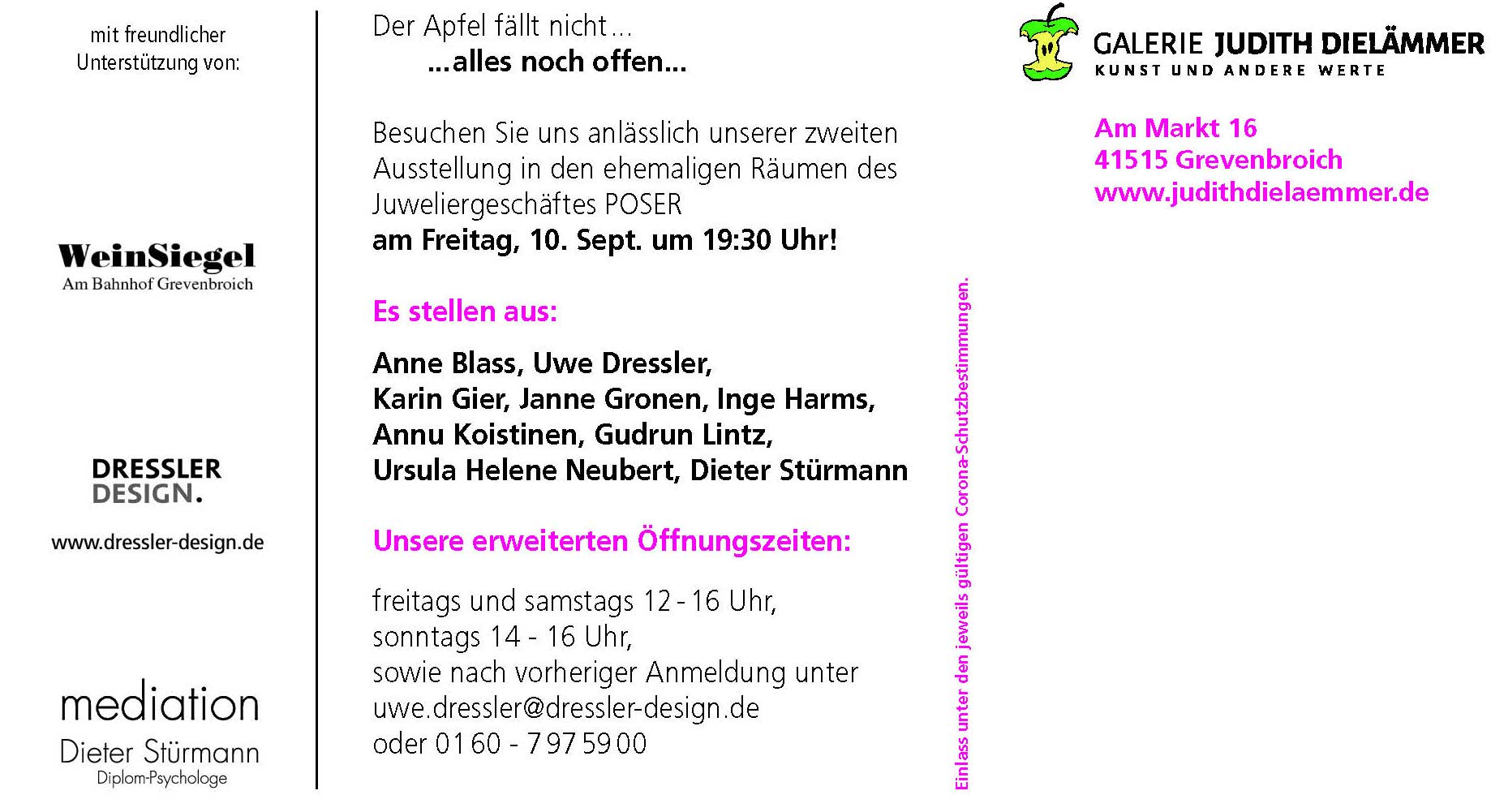 Besuchen Sie uns anlässlich unserer zweiten Ausstellung in den ehemaligen Räumen des Juweliergeschäftes POSER am Freitag, 10. Sept. um 19:30 Uhr!