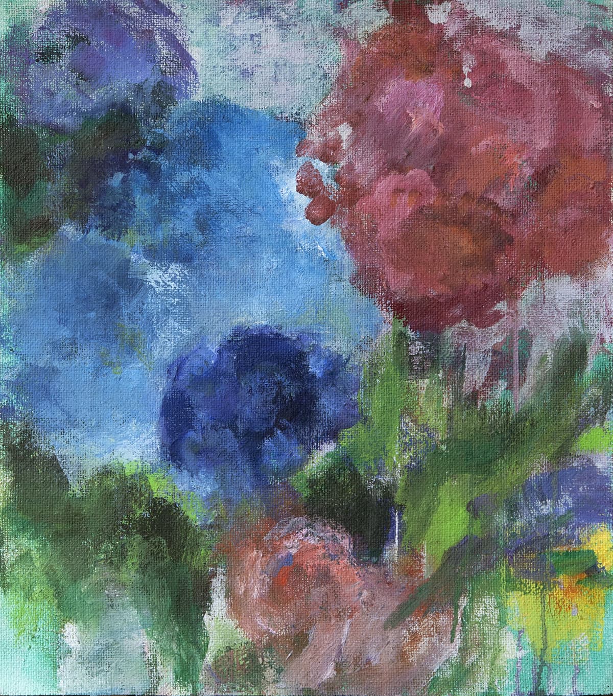 In der Natur entdecke ich Farbklänge, die mich begeistern. Besonders Blumen sind eine unerschöpfliche Inspirationsquelle für mich. Die von mir wahrgenommene Wirklichkeit übertrage ich in ein Farbenspektrum und entwickle daraus Gemälde, die zwischen gegenständlich und abstrakt changieren.